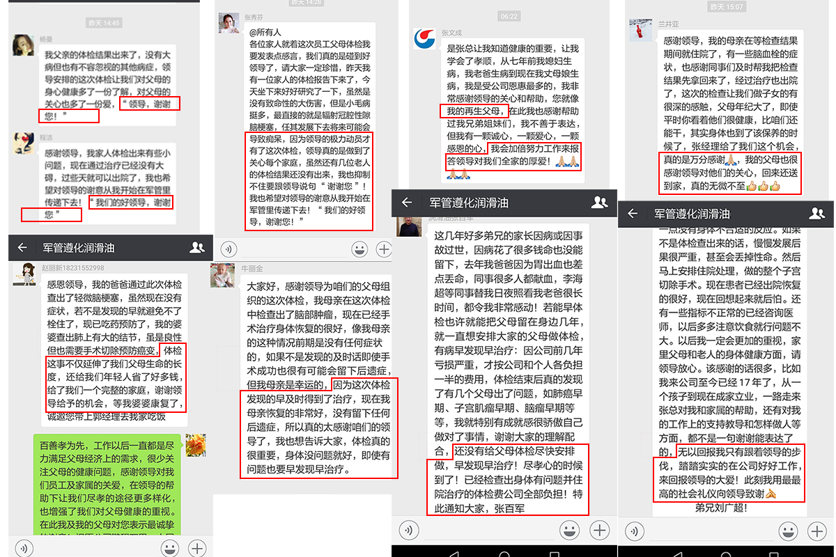自從2018年相關(guān)數據顯示公司已經(jīng)扭轉連續多年虧損的狀態(tài),總經(jīng)理張百軍首先想到的是——公司員工的健康問(wèn)題,于2018年3月組織全體員工體檢,對于體檢張百軍總經(jīng)理要求不能敷衍了事,要針對全體員工的情況,制定相應的體檢項目,幾經(jīng)周折最終選定在唐山人民醫院體檢中心做體檢工作。沒(méi)有想到員工的健康問(wèn)題只是張總關(guān)心的問(wèn)題之一,隨后張總召開(kāi)中層領(lǐng)導會(huì )議提出給員工父母體檢的想法,隨著(zhù)時(shí)間的流逝,父母的年齡在不斷的增長(cháng),身體狀況也是每況愈下,但是他們對自我身體的健康意識卻非常的薄弱。于是接下來(lái)開(kāi)始動(dòng)員全體員工勸說(shuō)父母參加公司組織的體檢活動(dòng),又指定專(zhuān)人去各個(gè)醫院了解針對老年人的體檢項目,全體員工各司其職進(jìn)行著(zhù)前期的籌備工作,于2018年8月完成了公司所有員工父母的體檢工作,所有員工父母對張總此次給予大家的福利深感謝意。其中多名員工的父母在這次體檢中受益匪淺,及時(shí)將病情扼殺在搖籃之中,為此多名員工表達了對張總的感謝。